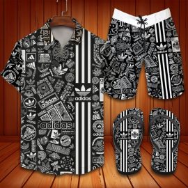 ADS Black Hawaii Shirt Shorts Set & Flip Flops Beach Clothing Clothes Outfit For Men HT