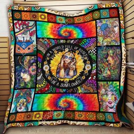 Gift For Hippie Hippie In A World Full Of Roses Be A Sunflower Quilt Throw Blanket CH