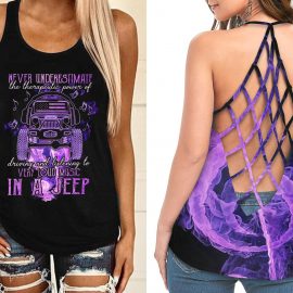 Gift For Jeep Lover Never Underestimate The Therapeutic Power Of Driving And Listening To Very Loud Music Criss Cross Open Back Camisole Tank Top
