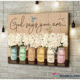 Hummingbird Gift God Says You Are White Hydrangea Flower Jar And Hummingbird Daily Bible Verse Wall Art Canvas PA
