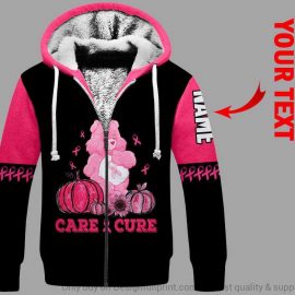 Personalized Care And Cure Pink Bear US Unisex Size Fleece Zipup Hoodie Breast Cancer