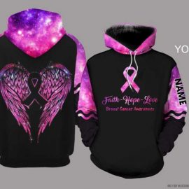 Personalized Faith Hope Love Breast Cancer Awareness US Unisex Hoodie