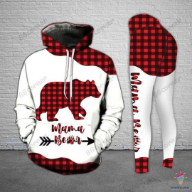 Birthday Gift Idea For Mom Red Caro Pattern Mama Bear Hoodie And Leggings Set HG