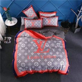 LV2 Red Grey Luxury Brand High-End Bedding Set Bedspread Duvet Cover Home Decor HT