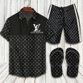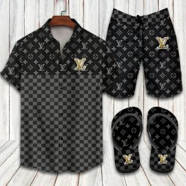 lv2 Black Hawaii Shirt Shorts Set & Flip Flops Luxury Clothing Clothes Outfit For Men HT