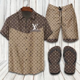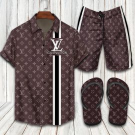 lv2 Brown Hawaii Shirt Shorts Set & Flip Flops Luxury Clothing Clothes Outfit For Men HT