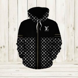 lv2 Black Unisex Zip Up Hoodie For Men Women Luxury Brand Clothing Clothes Outfit HT