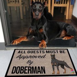 All Guests Must Be Approved By Doberman Dog Non-Slip Rubber Backing Doormat CP Dog Lover Gift